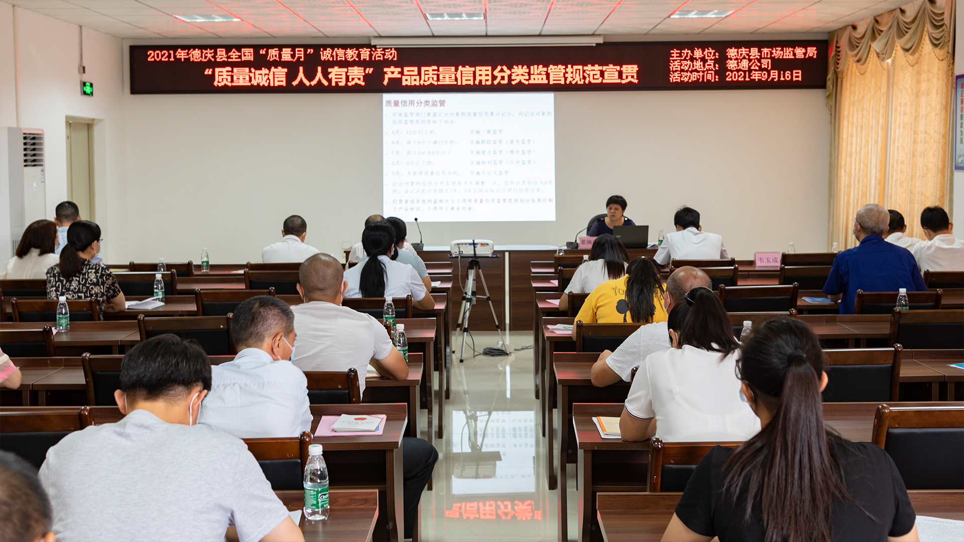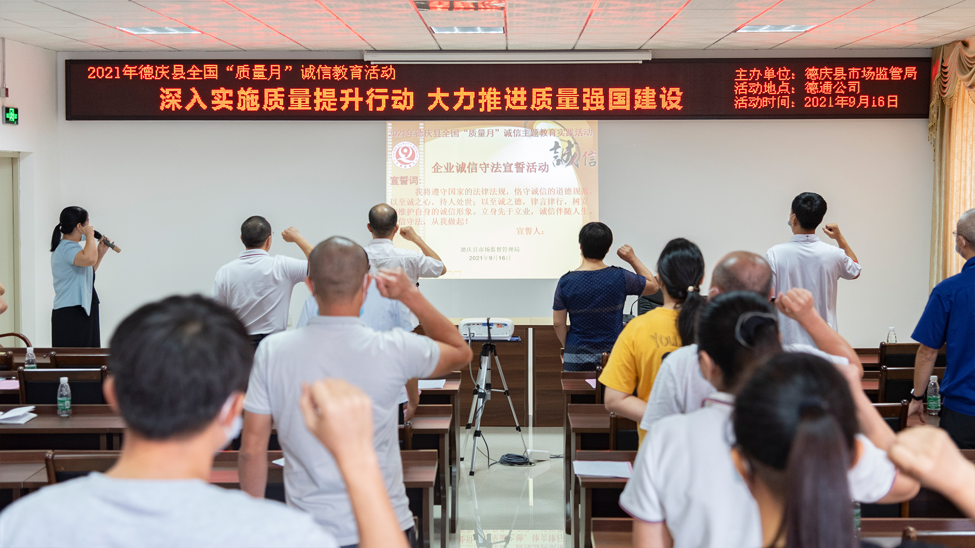 今年全國“質量月”以“深入實施質量提升行動,大力推進質量強國建設”為主題,由市場監管總局等20個部門聯合開展。9月16日,德慶縣市場監管局組織當地企業在德通風機總部培訓中心進行了系列宣傳活動。