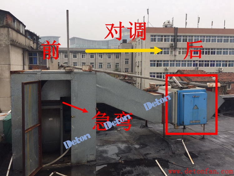 出風口一米內有急彎,導致風機噪音非常大